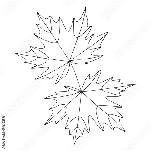 Continuous Simple black line art drawing of a Autumn Leaf in a minimalist style on a white background.