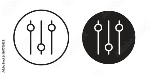 Control panel icons in line art and flat black clipart design style