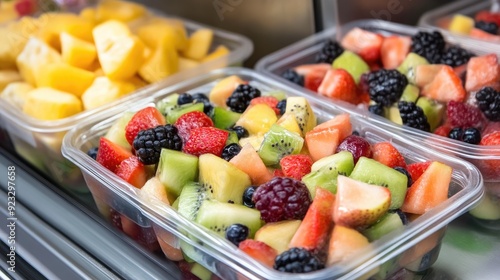 salad, plastic, container, refrigerated, display, case, purchase, fresh, food, healthy, snack, convenience, retail, shelf, store, package, nourishment, fruity, tropical, slice, mix, colourful, meal, ready, sealed, portion, chilled, epicure, assorted, grab, market, served, hygiene, vibrant, environmentally friendly