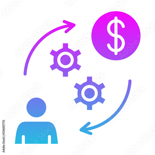 conversion, user, gear, success, dollar, work, outcome, vector, icon, illustration