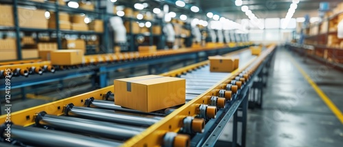 Conveyor belt transports boxes logistics warehouse operation shipping distribution efficiency supply chain automation industry technology.