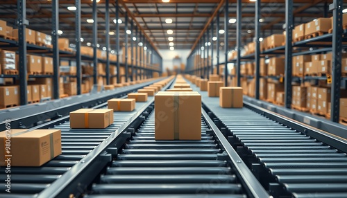 Conveyor Belts with Packages in Modern Warehouse, Ai generated Images