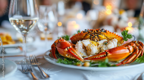 food, plate, seafood, meal, dinner, eatery, epicure, salad, fish, dish, meat, lunch, delicious, table, shrimp, cookery, cooked, white, vegetable, grilled, healthy, sauce, pork meat, prawn