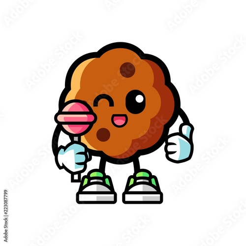 Cookie hold lollypop mascot cartoon illustration