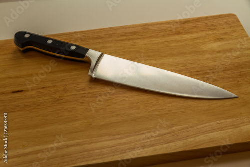 knife, cook, chef, chopping, wood, wooden, board, preparation, professional, metal, kitchen, eatery, sharp, tool, steel, stainless, cut, blade, brown, chop, cooking, food, shiny, utility, luxury, epicure, gastronomy, prepare, traditional, surface, accessory