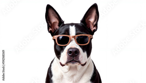 dog, pet, sunglasses, cool, confident, stylish, playful, animal, cute, portrait, domestic, companion, friendly, vibrant, trend, copy space, smiling, furry, canino, personality, lovable, adorable, fashionable, white background, joyful, fun, energetic, lifestyle, affection, casual attire, happiness