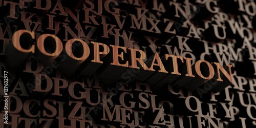 Cooperation - Wooden 3D rendered letters/message. Can be used for an online banner ad or a print postcard.