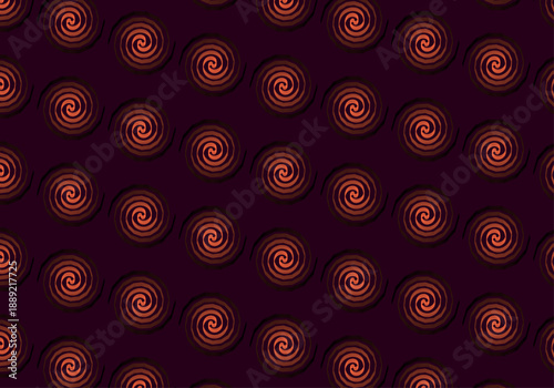 Copper Spiral Polka Dot Seamless Pattern on Deep Burgundy Purple Background