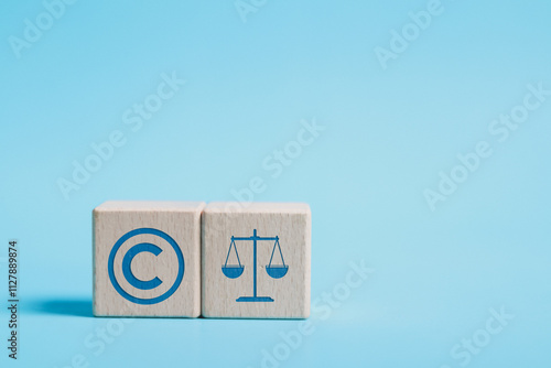 Copyright or patent concept. Copyright icon on wooden block for author rights and patent intellectual property