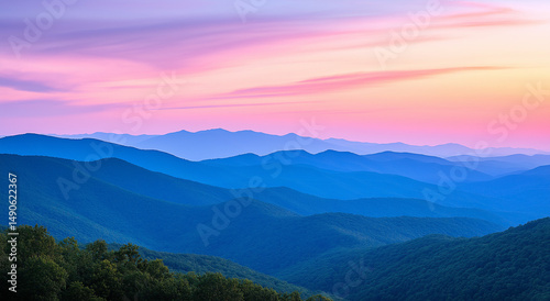 Cordilheira banhada em luz rosa e azul ao pôr do sol