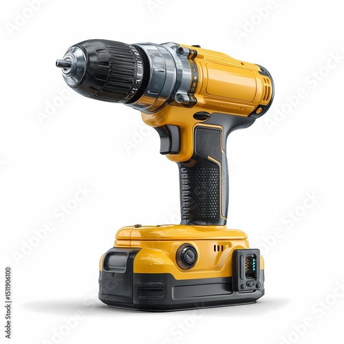 Cordless Drill Powerful Rechargeable Yellow Power Tool on white background