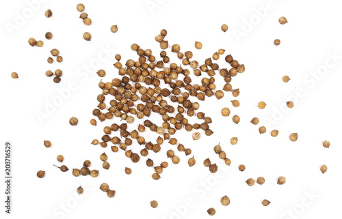 Coriander seeds isolated on white background, top view