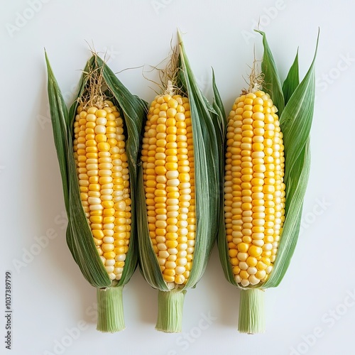 corn, food, vegetable, product, presentation, cob, isolated, yellow, maize, healthy, fresh, white, raw, sweet, sweet corn, grain, agriculture, crop, ripe, plant, leaf, husk, organic, green, nourishment, vegetarian, harvest, ingredient