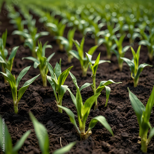 growth, land, plantation, corn, dirt, gardening, ground, row, seed, crop, sunlight, agricultural, cultivated, maize, new, young, farmland, flow, grain, growing, springtime, sunrise, ecology, fertile, life, vegetable, freshness, rural, development, earth, environmental, harvest, horizontal, meadow, no people, photo, stem, up, abundance, color image, farmer, fragility, midwest, planting, scene, wheat