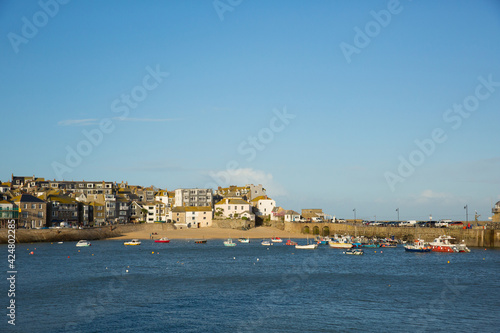 Cornish harbour St Ives Cornwall UK with boats popular Cornish tourist destination