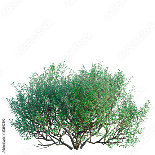 Corokia cotoneaster tree, front view, cutout, transparent background, isolate, architecture visualization, Lush Green Bush with Detailed Foliage - Perfect for Landscape Designs and Compositing