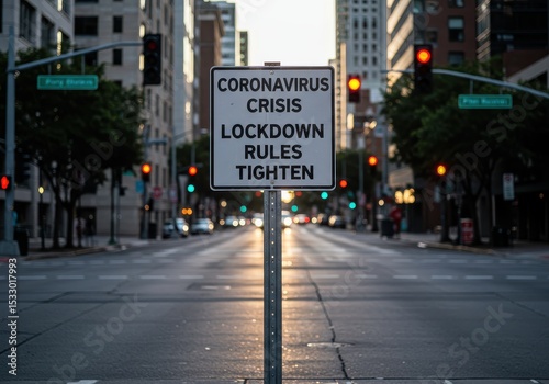 crisis, rule, signs, street, city, traffic, urban, road, transportation, building, restriction, pandemic, empty, day, downtown, travel, safety, alert, warning, message, government, policy, control, regulation, tighten, economy, health, public, outbreak, prevention