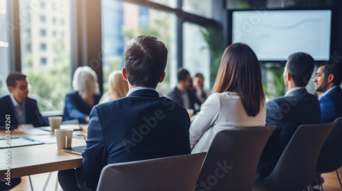 Corporate meeting of IT industry employees who talk about new projects and the direction of company development