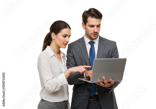Corporate Team Collaboration: Confident Business Team Holding a Laptop on Transparent Background (PNG Format)
