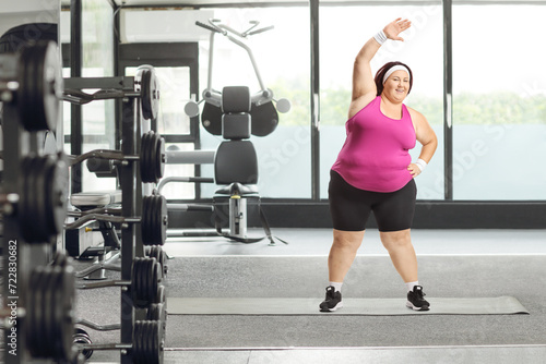 Corpulent woman exercising at the gym