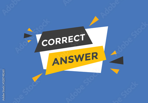 Correct answer text button. Correct answer speech bubble. Correct answer banner label template. Vector Illustration