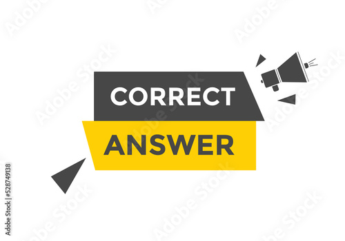Correct answer text button. Correct answer speech bubble. Correct answer banner label template. Vector Illustration