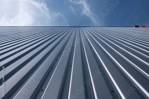 Corrugated iron sheet, aluminum Facade of a warehouse as background texture
