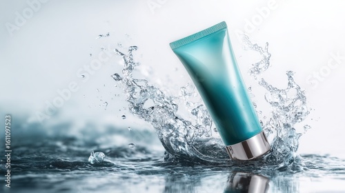cosmetic tube in water splash