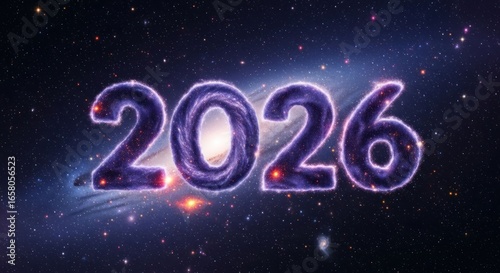 cosmic, year, 2026, future, number, space, galaxy, nebula, star, universe, cosmos, light, glow, purple, violet, energy, digit, new, beginning, time, yearning, abstract, graphic, design, digital, art, technology, futuristic, number, hope