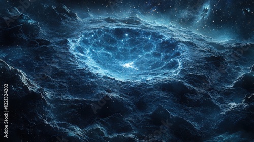 Cosmic Abyss with Glowing Blue Light and Dark Starry Background