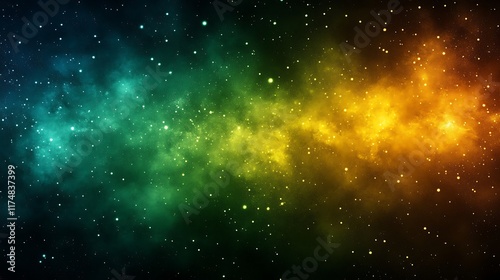 Cosmic Canvas: A vibrant nebula explodes across the celestial expanse, awash in hues of emerald, gold, and sapphire. Thousands of stars twinkle in the dark background.