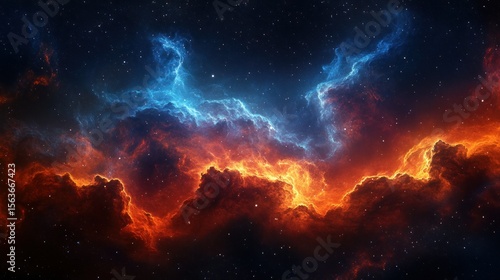 Cosmic Fire and ice nebula in starry space expanse