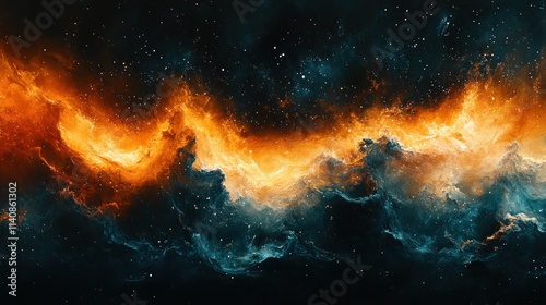 space, nebula, cosmos, galaxy, star, orange, fire, flames, teal, blue, dark, night, cosmic, celestial, abstract, art, design, fantasy, science, fiction, energy, power, wave, swirl, texture, pattern, background, universe, fiery