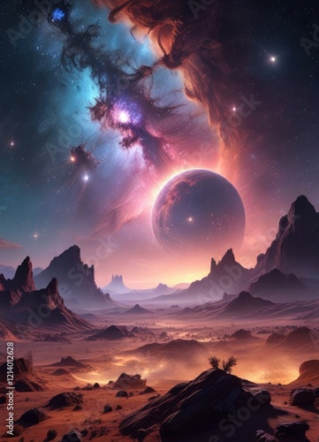 Cosmic landscape with glowing nebulas and distant stars , universe, glow, cosmic