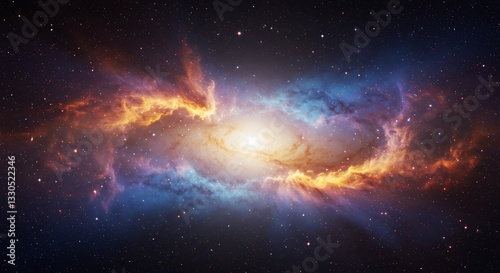 Cosmic Nebula Blazes Brightly Warm Orange and Blue Hues. AI Generated