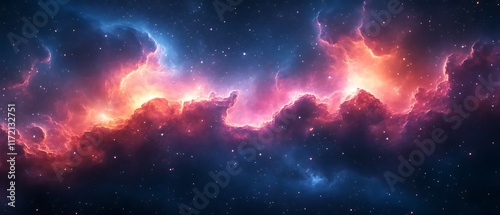 Cosmic Nebula Red and Blue Gaseous Clouds.