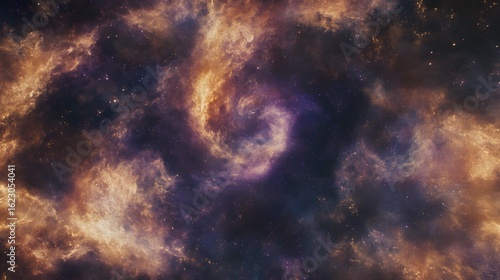 Cosmic Nebula Swirl, Abstract Space Background with Golden and Purple Hues