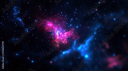 Cosmic nebula swirls in vibrant hues of pink and blue