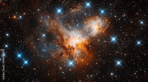 nebula, cosmic, star, galaxy, universe, space, cluster, vibrant, colours, orange, blue, light, celestial, astronomic, deep, exploration, cosmos, huge, bright, glowing, hydrogen, emission, red, yellow, dust, gas, beautiful, intricate, complex, distant, powerful, energy, million, astronomy, science, radiation, formation, nebulous