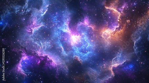 Cosmic Nebula vibrant colors, star clusters, interstellar dust; science fiction, astronomy
