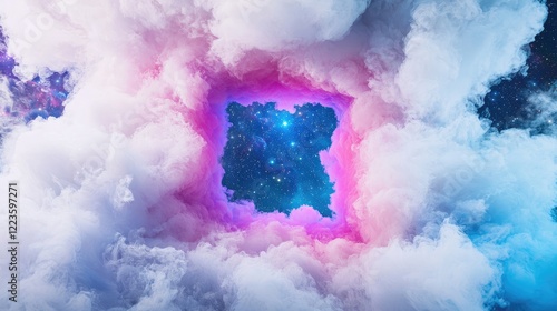 Cosmic nebula within cloudscape, vibrant colors, dreamy background, ideal for fantasy art
