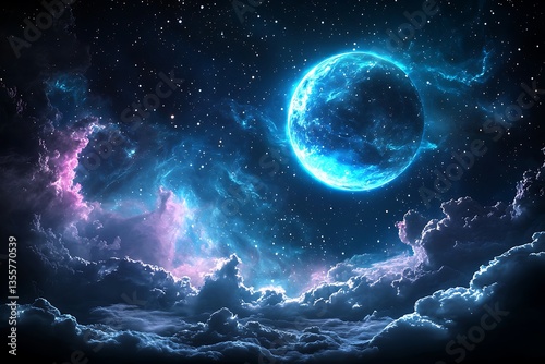 night, sky, cloud, moon, star, universe, cosmos, galaxy, space, planet, nebula, light, glow, colourful, fantasy, imagination, surreal, vibrant, beautiful, aesthetic, artistic, digital, artwork, graphic, design, surrealism, cosmic, glowing, celestial, atmosphere, futuristic, art, cloudscape