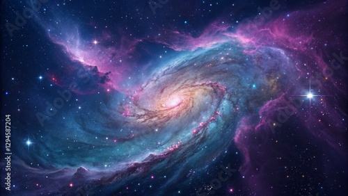Cosmic Spiral Galaxy Vibrant Hues, Swirling Nebula, Celestial Composition, Space Art. Galaxy,Nebula