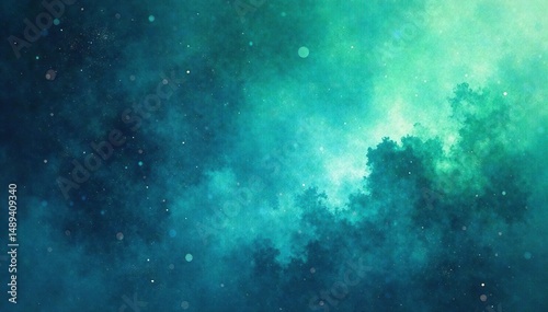 Cosmic watercolor wash; navy, blue, green hues blend asymmetrically, fractal shapes Fading flow effect , space background, green, abstract