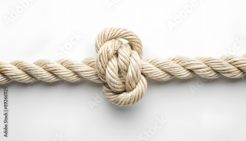 Cotton rope with knot on white background
