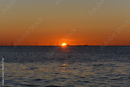 coucher de soleil, Eolienne en mer, Pornichet, 44, Loire Atlantique , France