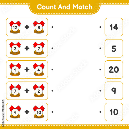 Count and match, count the number of Christmas Bell and match with the right numbers. Educational children game, printable worksheet, vector illustration