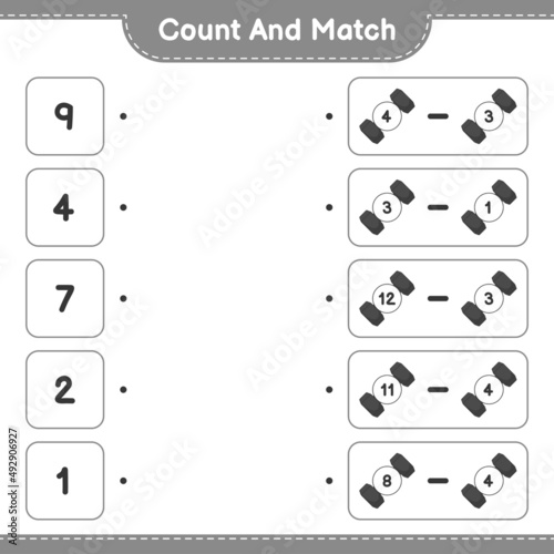 Count and match, count the number of Dumbbell and match with the right numbers. Educational children game, printable worksheet, vector illustration