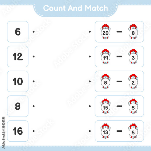 Count and match, count the number of Gift Box and match with the right numbers. Educational children game, printable worksheet, vector illustration