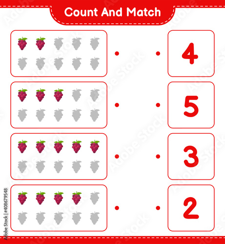 Count and match, count the number of Grape and match with right numbers. Educational children game, printable worksheet, vector illustration